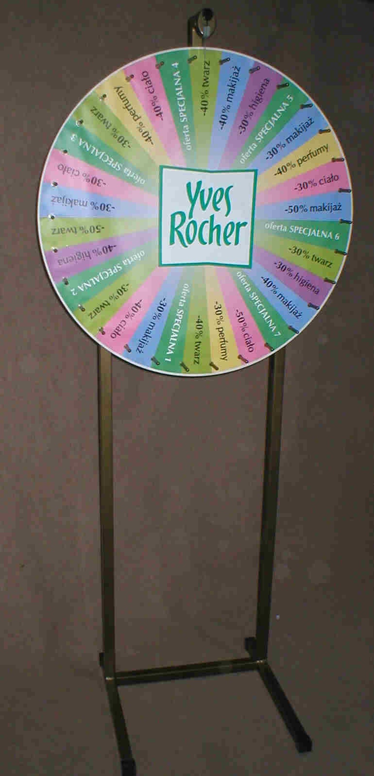 Zdjęcia przedstawiają koła fortuny realizowane dla innych klientów. Pracujemy na zamówienie, dlatego szczegóły wykonania uzgadniamy z Państwem indywidualnie.