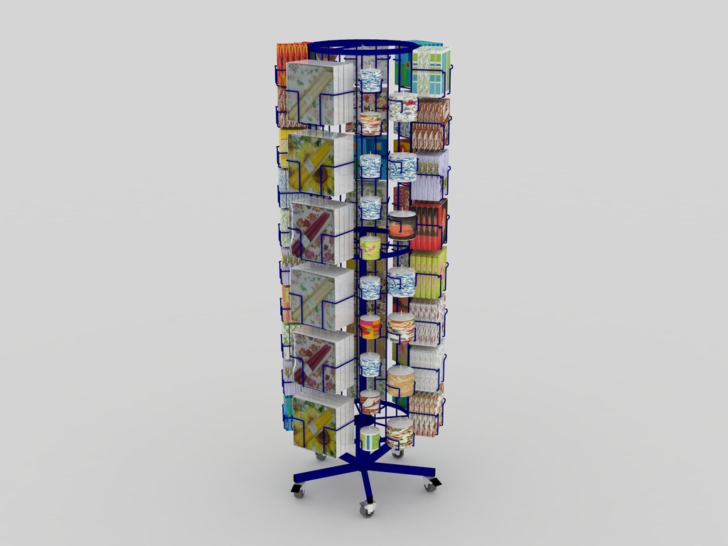 Na zamówienie wykonujemy stojaki reklamowe pod wymagania klienta. Na zdjęciu ekspozycja serwetek i świec.