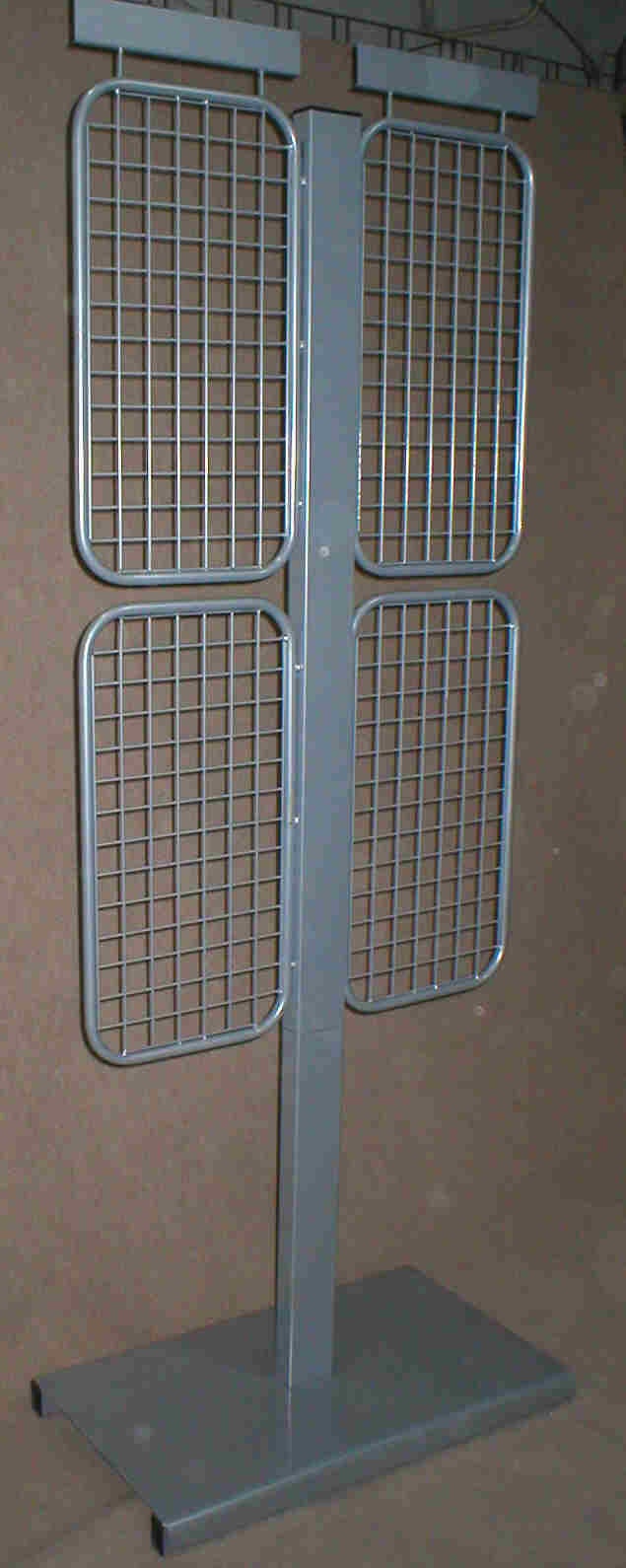 Stojak podłogowy z kratami do wpinania haków i miejscem na logo