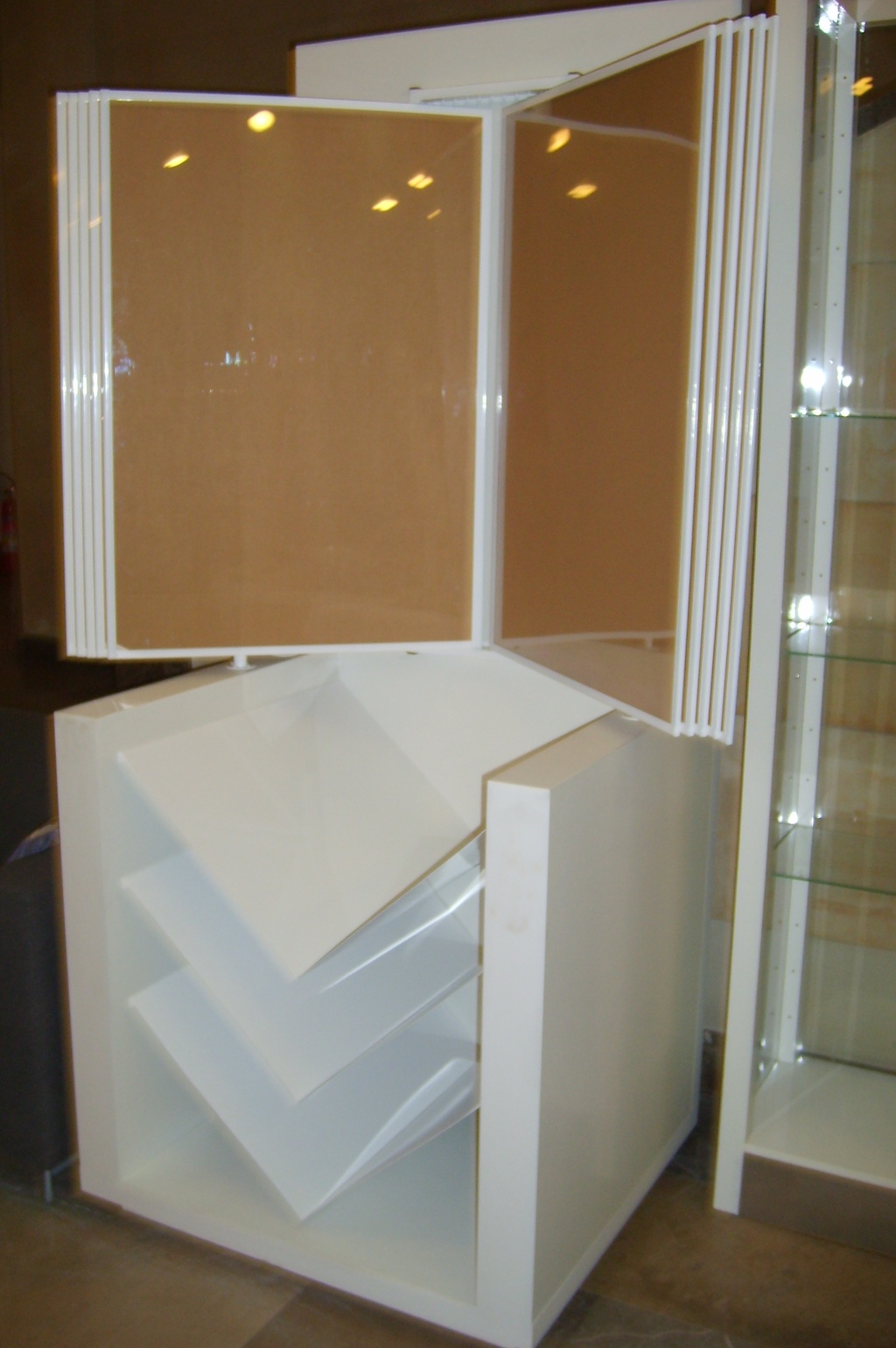 w górnej części przeglądarka do plakatów 70 x 100 cm; 10 ramek z wypełnieniem (tektura + 2 x transparentne tworzywo)
