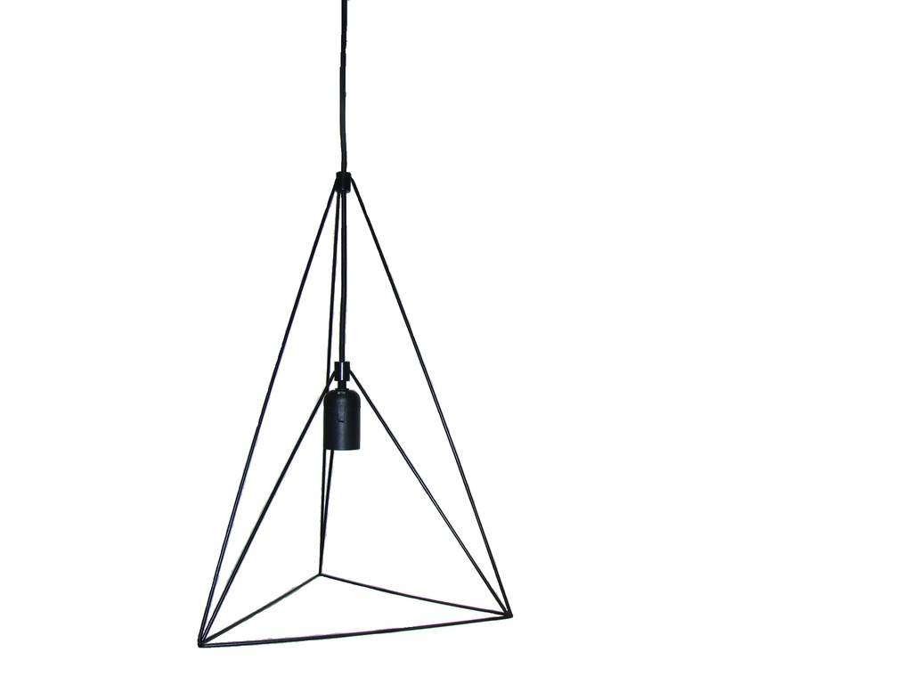 podstawa - trojkąt o boku 30cm, wysokosc konstrukcji 45cm, zawiesie dlugosci 1m